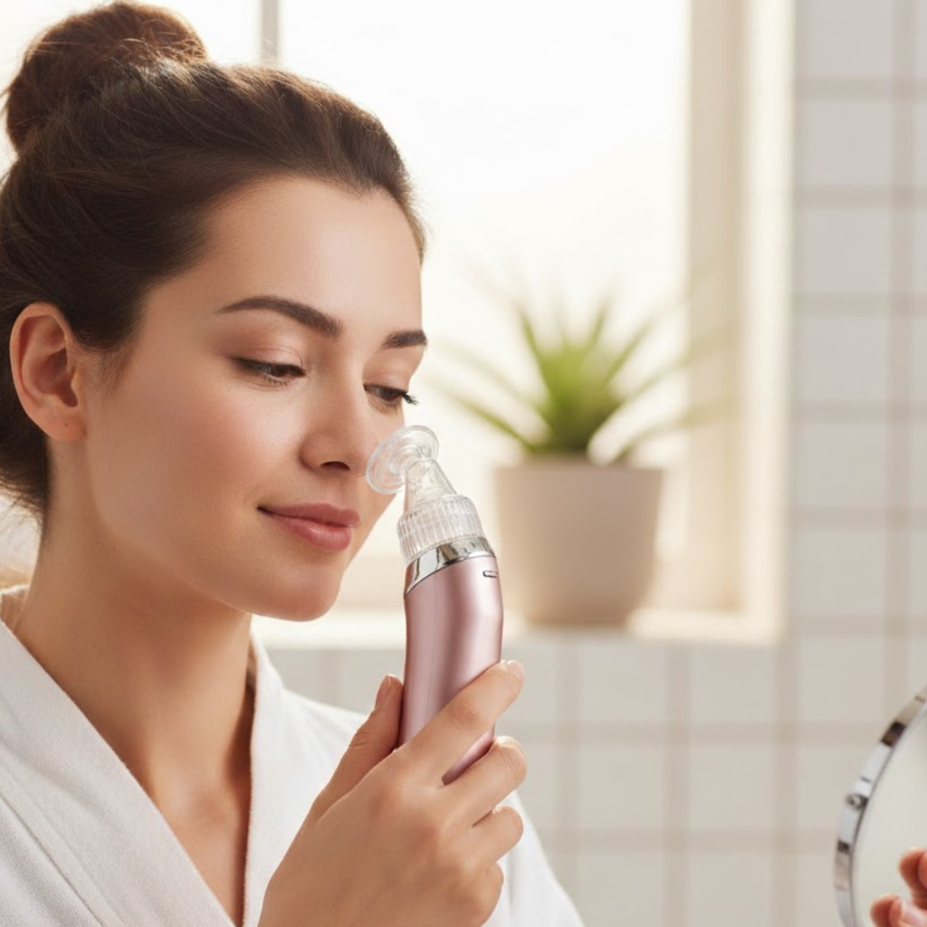 Nuestra Máquina de Succión Facial elimina suavemente la suciedad y los puntos negros desde la raíz, ayudando a que tu piel respire, se vea más suave y brille con su luz natural.